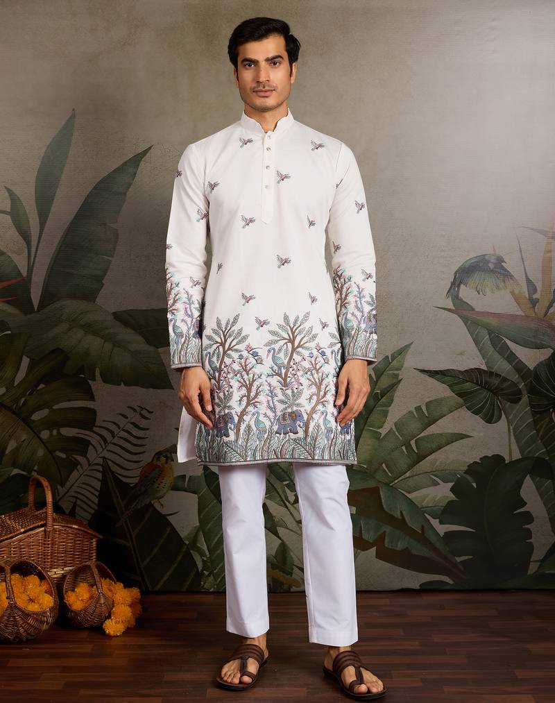 • Product Id : 4694435 • Package Details : 1 Kurta • Type : Kurta • Occasion : Ceremonial • Fabric : Viscose • Work : Embroidered • Type : Thread Work • Look : Contemporary • Sleeve : Full Sleeve • Neck Style : Band Collar Neck Kameez • Color : White • Top Color : White • Top Fabric : Silk,Viscose • Stitching : Stitched Payments [+]