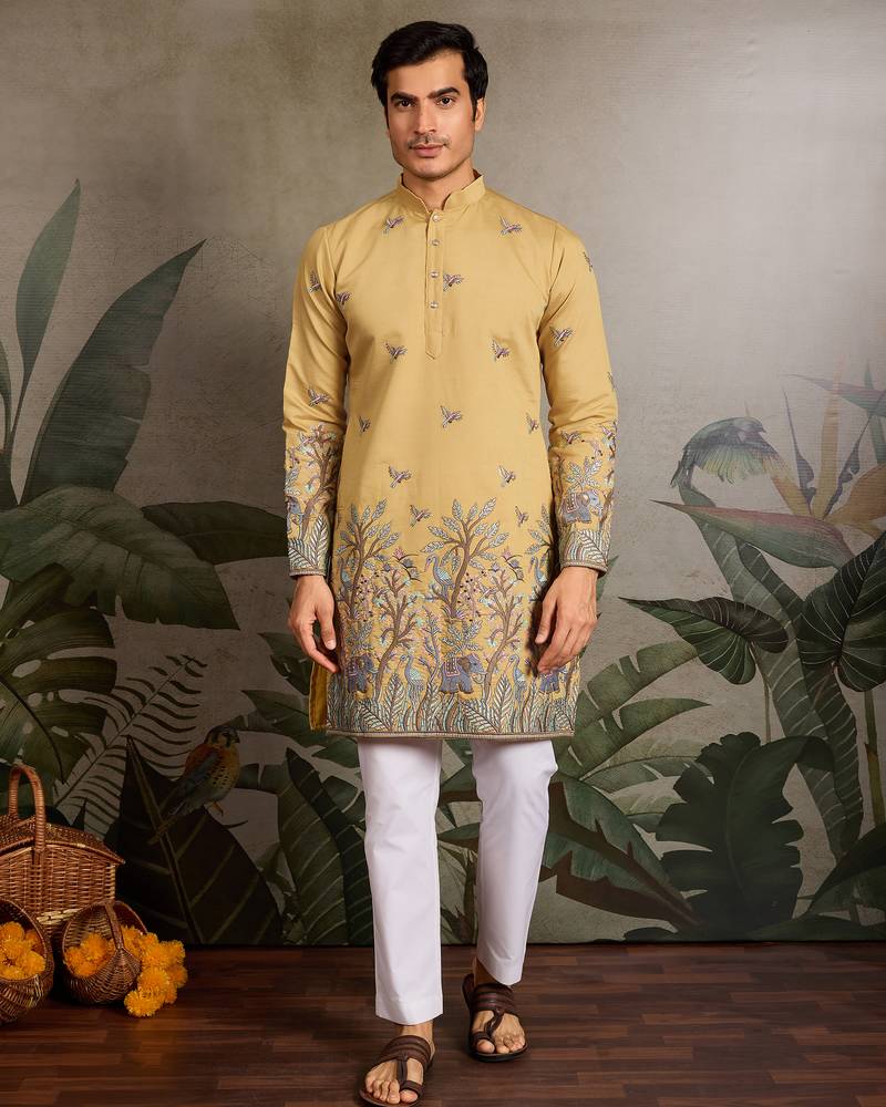 • Product Id : 4694432 • Package Details : 1 Kurta • Type : Kurta • Fabric : Viscose • Work : Embroidered • Type : Thread Work • Look : Traditional • Sleeve : Full Sleeve • Neck Style : Band Collar Neck Kameez • Color : Yellow • Top Color : Yellow • Top Fabric : Silk,Viscose • Stitching : Stitched Payments [+]