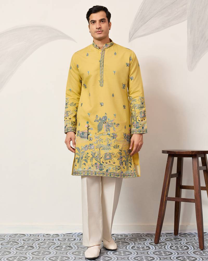 • Product Id : 4694390 • Package Details : 1 Kurta • Type : Kurta • Occasion : Wedding • Fabric : Viscose • Work : Embroidered • Type : Thread Work • Look : Designer • Sleeve : Full Sleeve • Neck Style : Band Collar Neck Kameez • Color : Yellow • Top Color : Yellow • Top Fabric : Silk,Viscose • Stitching : Stitched Payments [+]