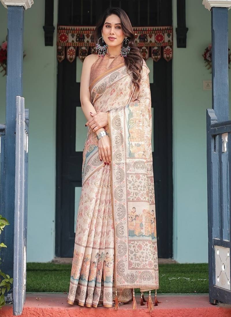 $53.53$157.6(66% OFF)price changedSelect SizexIvory With Floral Prints Linen Cotton Handloom Printed Saree, Festive Procession Pallu, And Tassels$53.53$157.666% OFFSize$53.53$157.6(66% OFF)Size$53.53$157.6(66% OFF)Product ID : 4709484Estimated Delivery: 06 Mar 2026NEED HELP ?Price Match Promise