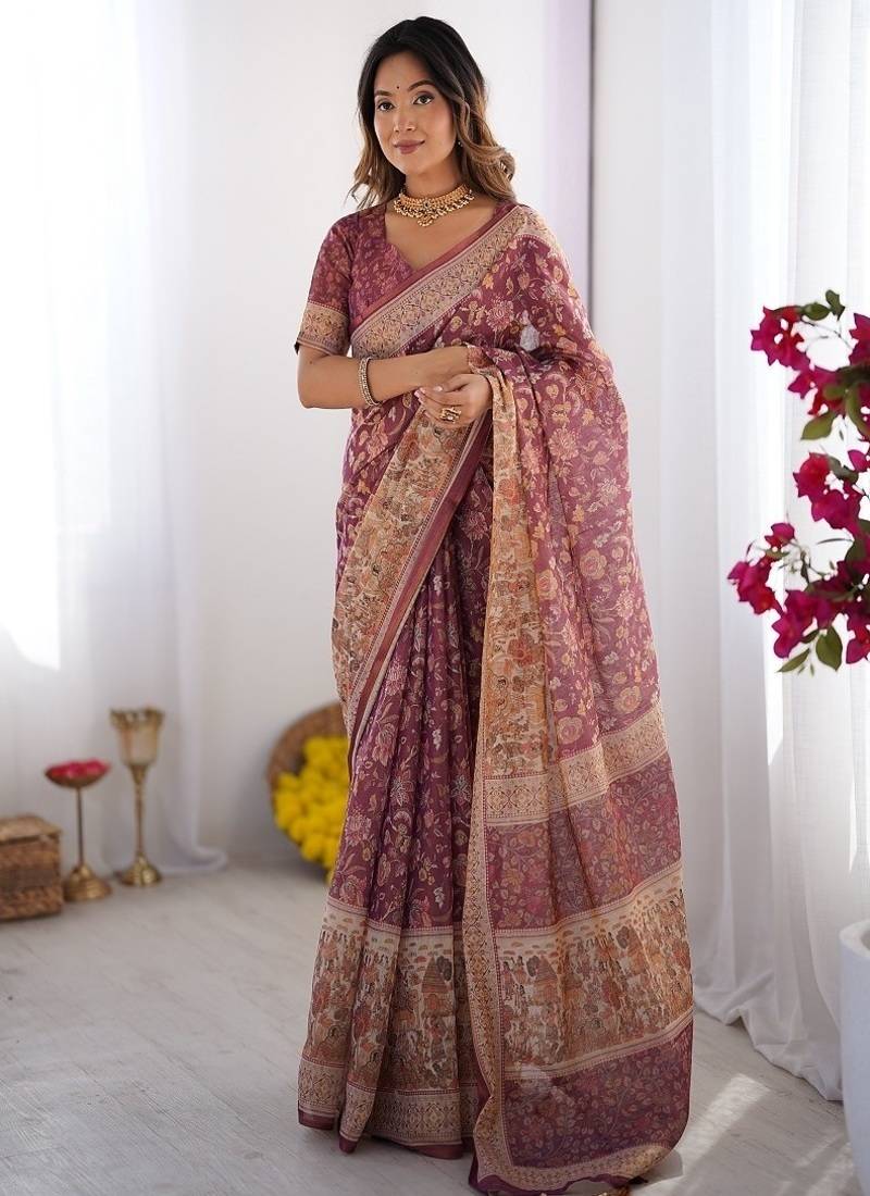 • Saree : Color- Wine / Fabric- Linen • Blouse : Color- Wine Saree Details