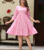 • Product Id : 4317323 • Package Details : 1 Tunic Short Dress • Type : Dresses • Region : Rajasthani • Fabric : Rayon • Work : Printed • Type : Floral Print • Look : Designer • Sleeve : Elbow Sleeve • Neck Style : Round Neck • Color : Pink • Stitching : Stitched • Length : 40.0 Payments [+]