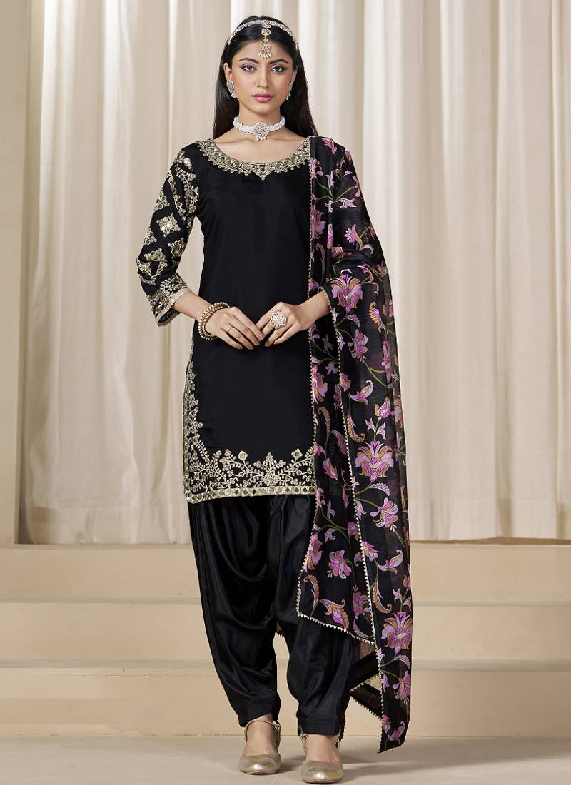Black Roman Silk Embroidered Salwar Suit For Festival Semi stitched