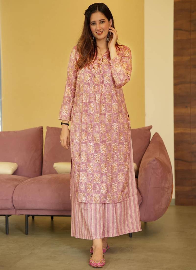 • Product Id : 4714397 • Package Details : 1 Top / 1 Bottom • Type : Kurta Sets • Sleeve : Full Sleeve • Neck Style : Collar Neck Kameez • Occasion : Formal • Fabric : Rayon • Color : Light Pink • Work : Digital Print • Stitching : Stitched Payments [+]