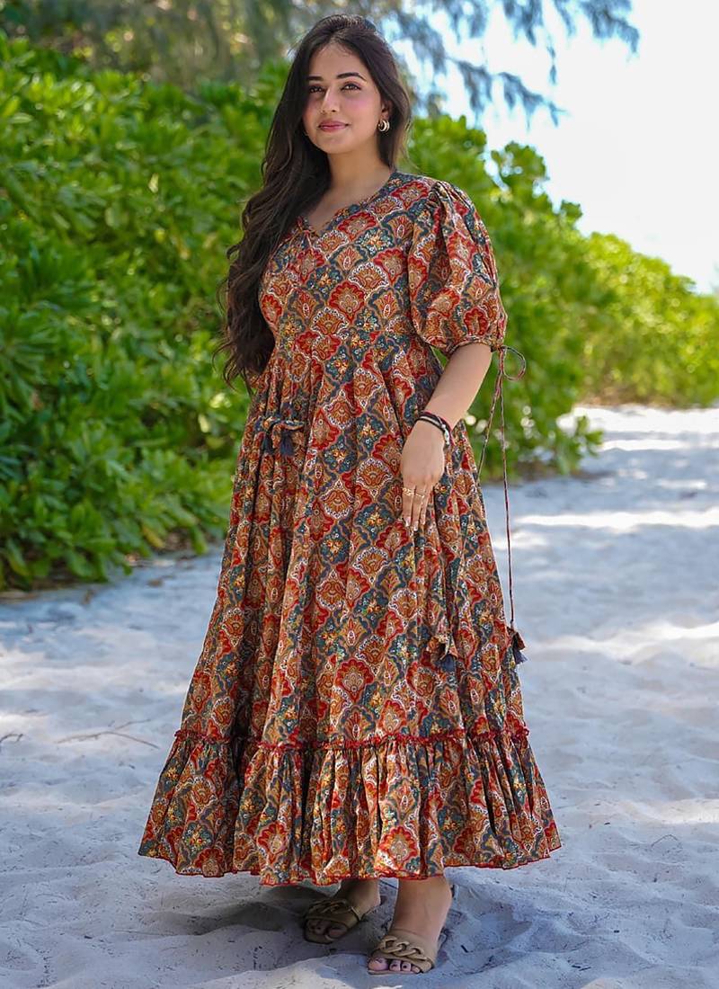 Multi Color Rayon Digital Print Designer Western Gown Stitched