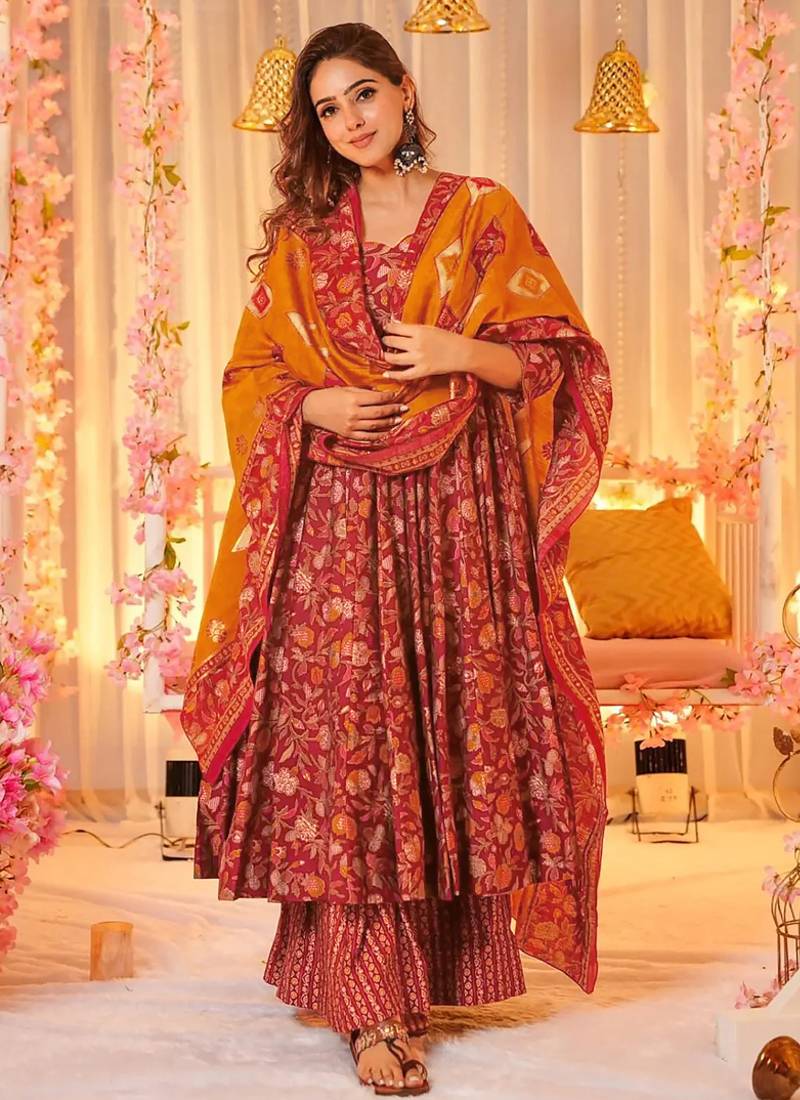 Red Muslin Digital Print Designer Salwar Suit Stitched