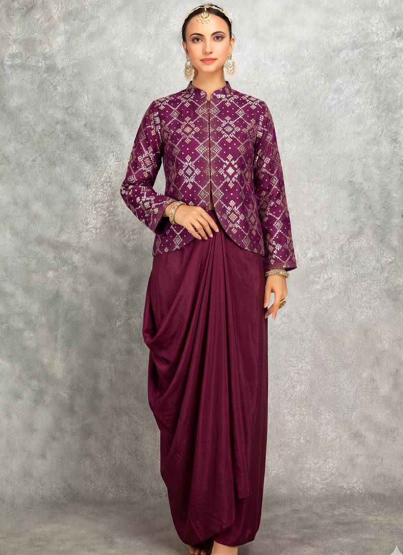 • Product Id : 4755383 • Package Details : 1 Top/1 Bottom • Type : Readymade Suits For Women • Occasion : Wedding • Type : Banarasi Silk • Sleeve : Full Sleeve • Neck Style : Round Neck • Fabric : Jacquard • Color : Wine • Work : Jacquard • Stitching : Stitched General - Color and Texture may have slight variation. This happens because of photography.
