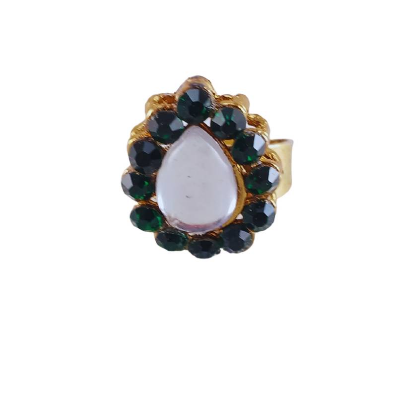 Size-Adjustable ,Material-Brass ,Pack of-1 ,Color-Green ,work-Stone stud ,item-Ring
