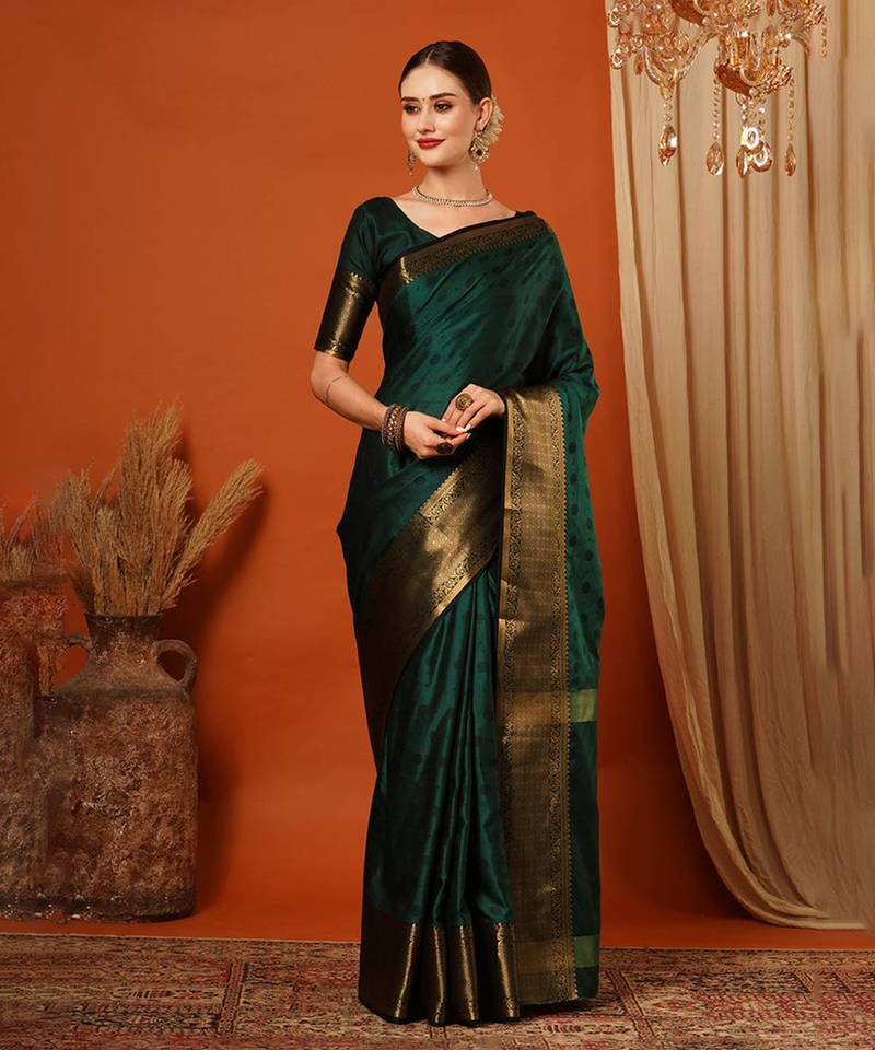 • Border : Designer Border • Color : Green • Fabric Of : Silk Cotton • Color : Green Blouse Details