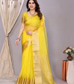 • Border : Heavy Border • Fabric Of : Organza • Color : Yellow • Color : Yellow Blouse Details