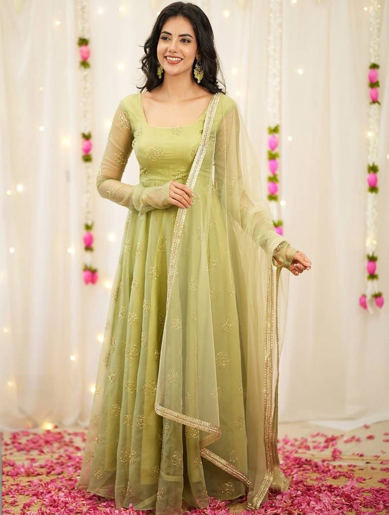 • Product Id : 4748746 • Package Details : 1 Top / 1 Bottom / 1 Dupatta • Type : Anarkali Suit • Work : Embroidered • Look : Designer • Sleeve : Full Sleeve • Neck Style : U Neck • Fabric : Organza • Color : Light Green • Stitching : Stitched General - Color and Texture may have slight variation. This happens because of photography.