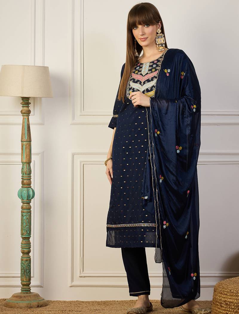 Blue Women Kurta Pant Dupatta Set Stitched