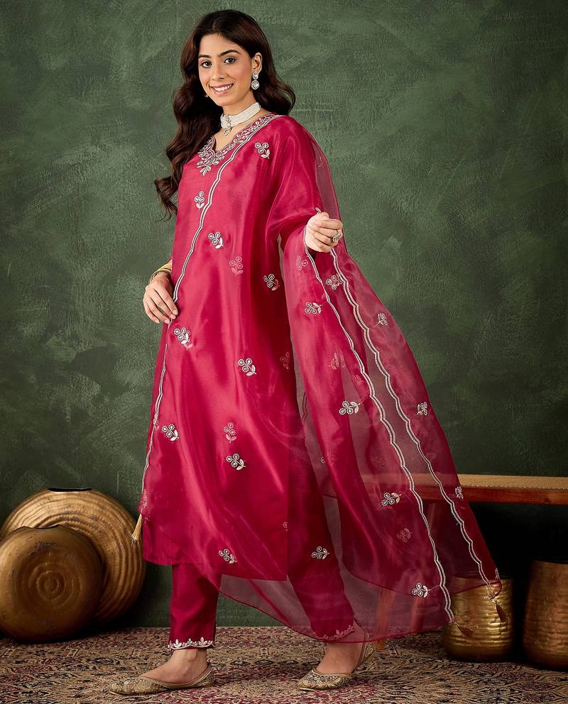 Maroon Women Kurta Pant Dupatta Set Stitched