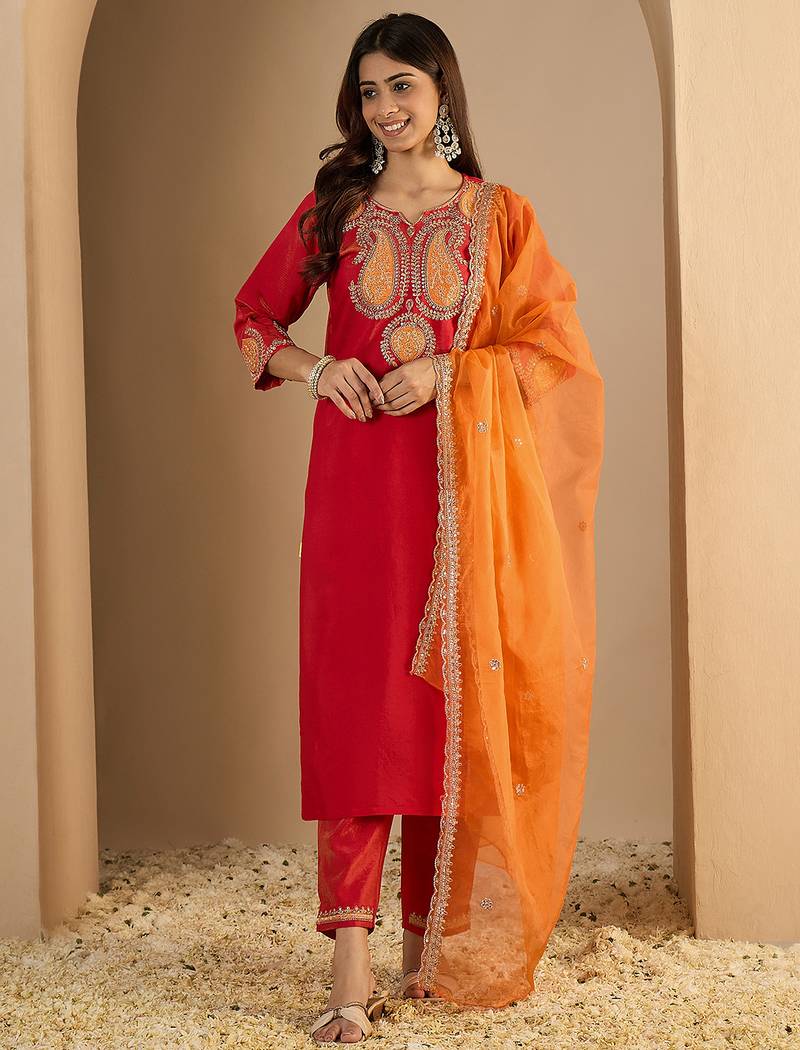 Pink Women Kurta Pant Dupatta Set Stitched