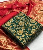 Green Banarasi Silk Unstitched Dress Material