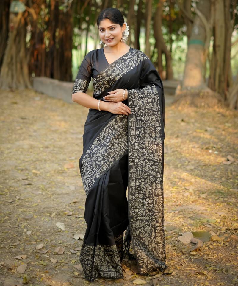 • Saree : Color- Black / Fabric- Silk Blend • Blouse : Color- Black / Fabric- Silk Blend Saree Details