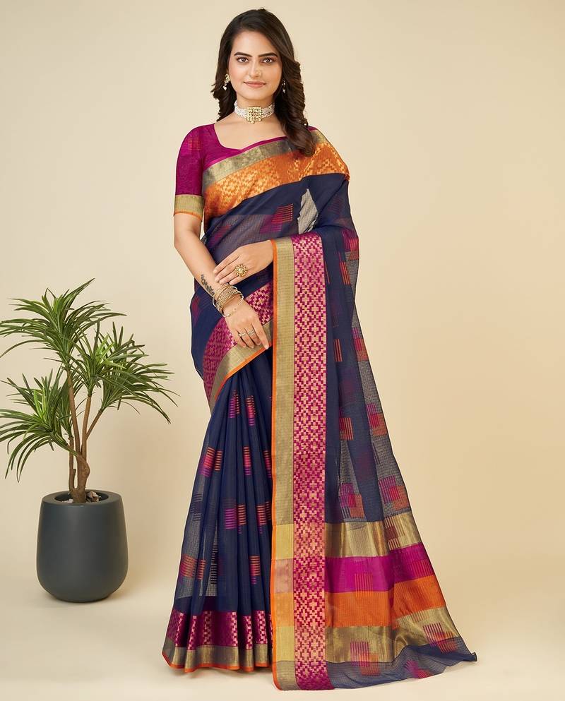 • Fabric Of : Chanderi • Color : Blue • Color : Blue Blouse Details