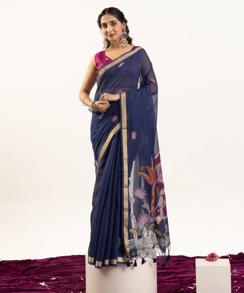 • Saree : Color- Blue / Fabric- Blended Cotton • Blouse : Color- Pink / Fabric- Blended Cotton Saree Details