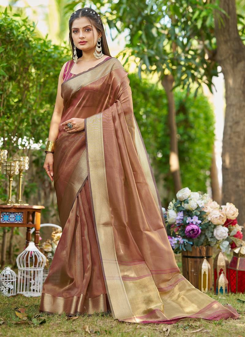 Brown Plain Tissue Tissue Sarees Saree With Blouse