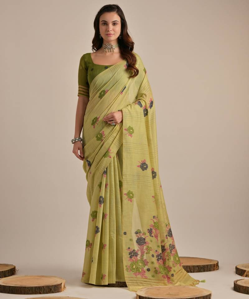• Saree : Color- Green / Fabric- Blended Cotton • Blouse : Color- Green / Fabric- Blended Cotton Saree Details