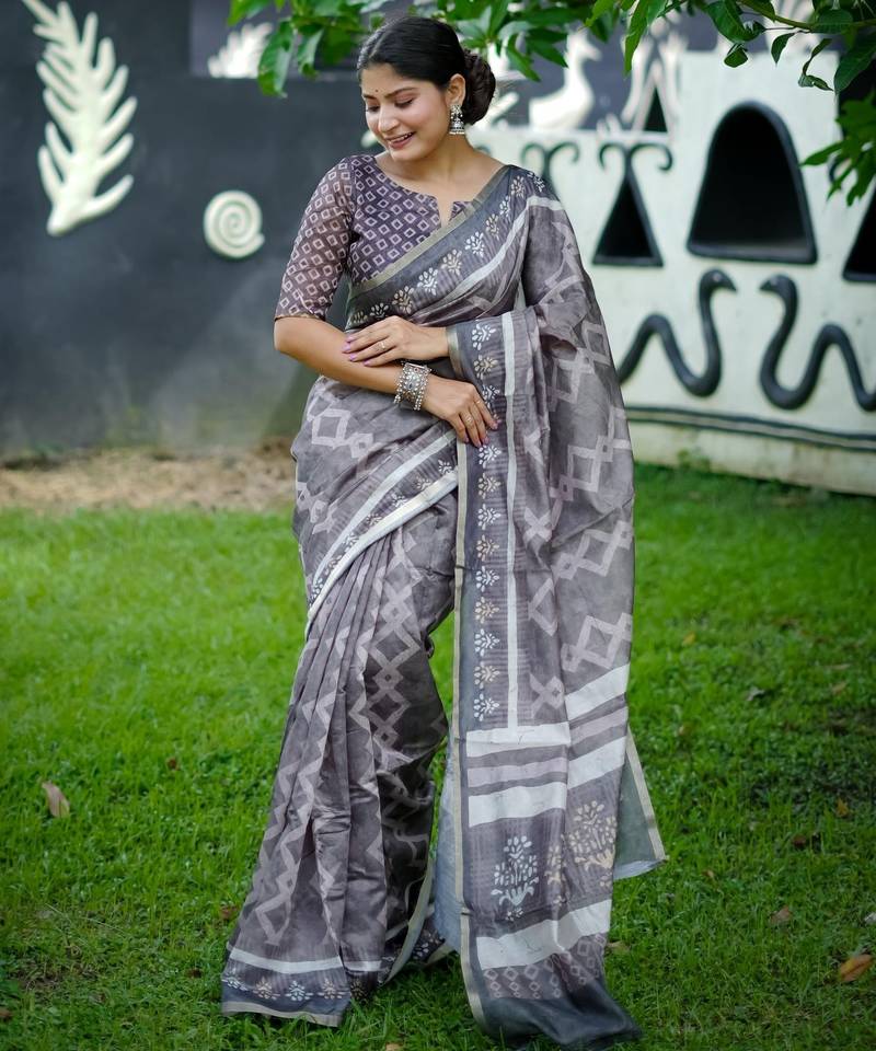 • Saree : Color- Grey / Fabric- Silk Blend • Blouse : Color- Grey / Fabric- Silk Blend Saree Details