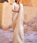 Ivory Cream Kouram Silk Bland Sequance & Thread Work Saree With Blouse