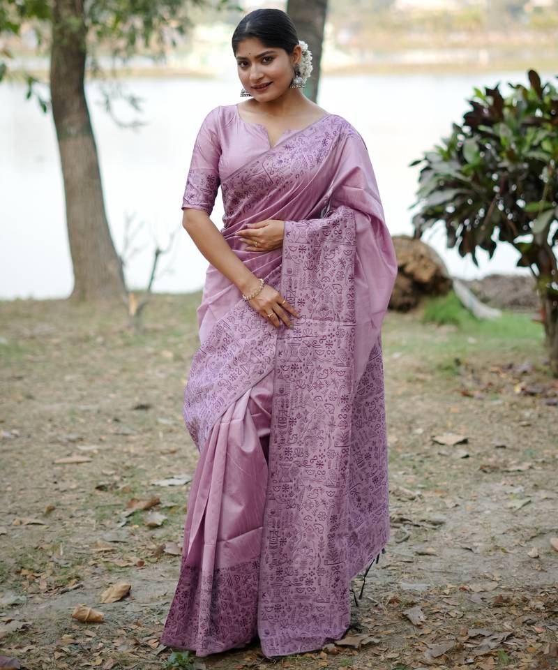• Saree : Color- Lavender / Fabric- Silk Blend • Blouse : Color- Lavender / Fabric- Silk Blend Saree Details