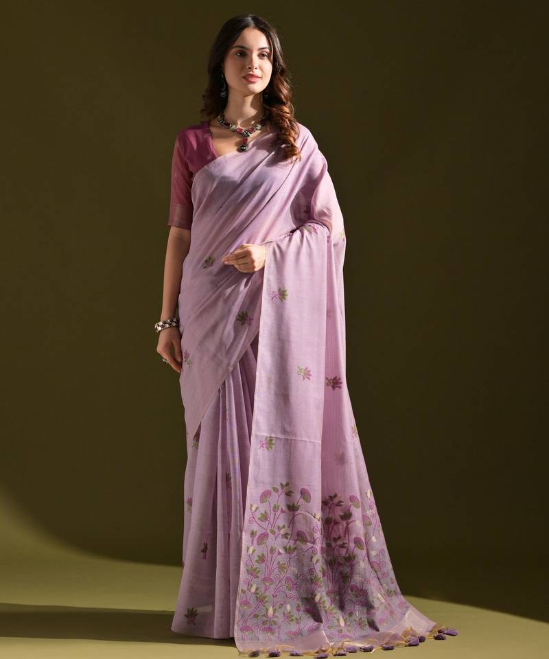 • Saree : Color- Lavender / Fabric- Blended Cotton • Blouse : Color- Lavender / Fabric- Blended Cotton Saree Details