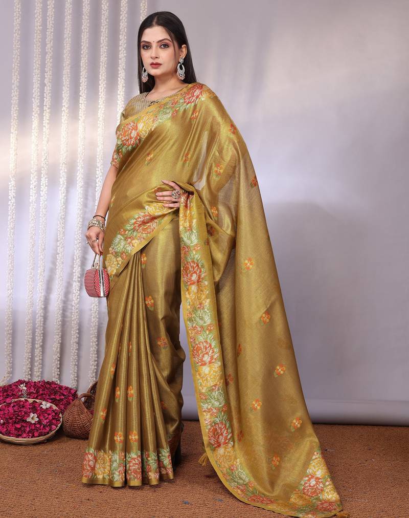 • Saree : Color- Multicolor / Fabric- Tissue • Blouse : Color- Bronze / Fabric- Tissue Saree Details