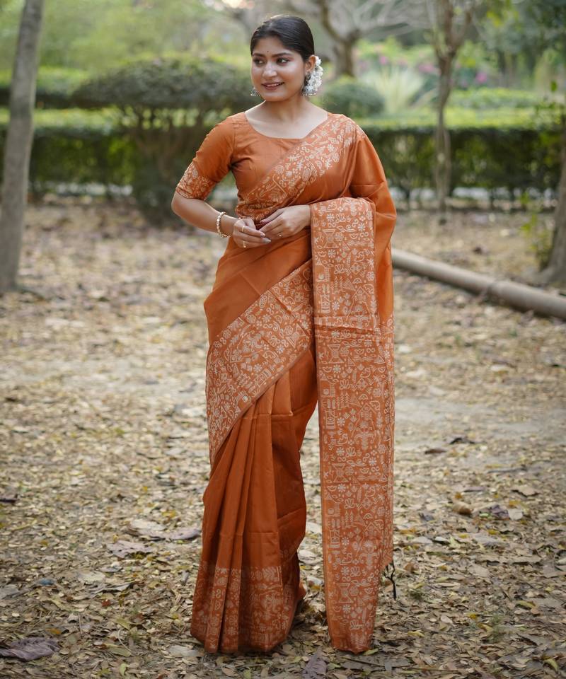 • Saree : Color- Orange / Fabric- Silk Blend • Blouse : Color- Orange / Fabric- Silk Blend Saree Details
