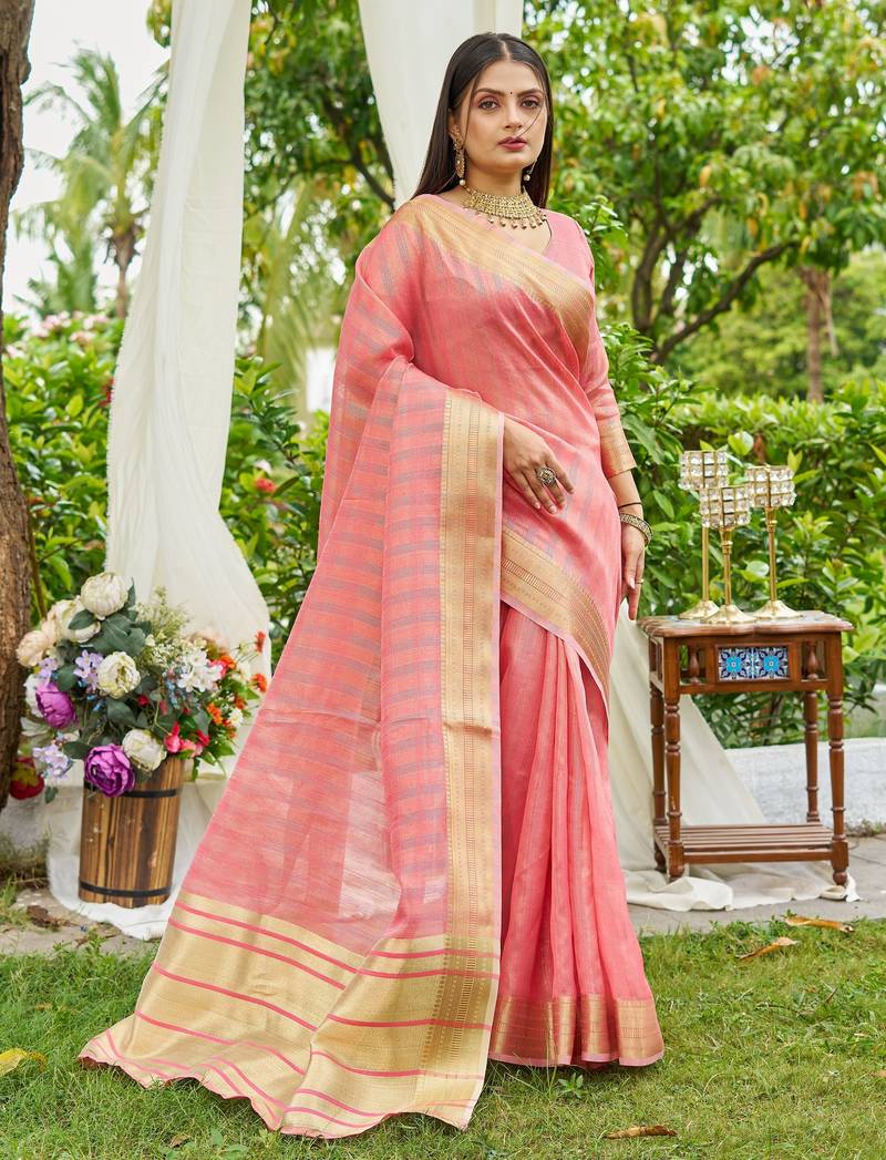 Peach Plain Silk Silk Sarees Saree With Blouse