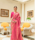 Pink Kishika Silk Bland Banarasi Style Zari Weaving Saree With Blouse