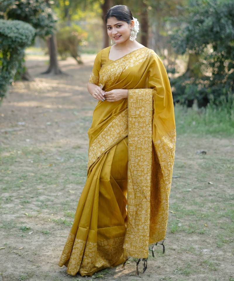 • Saree : Color- Yellow / Fabric- Silk Blend • Blouse : Color- Yellow / Fabric- Silk Blend Saree Details