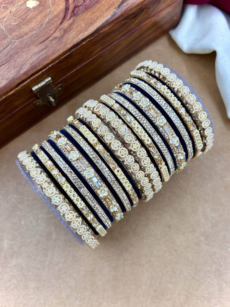 • Product Id : 4707623 • Package Details : 1 Set Of Bangle • Type : Bridal Bangles & Bracelets For Women • Jewellery Work : Stone • Color : Blue • Plating : Antique Gold • Base Material : Metal Payments [+]