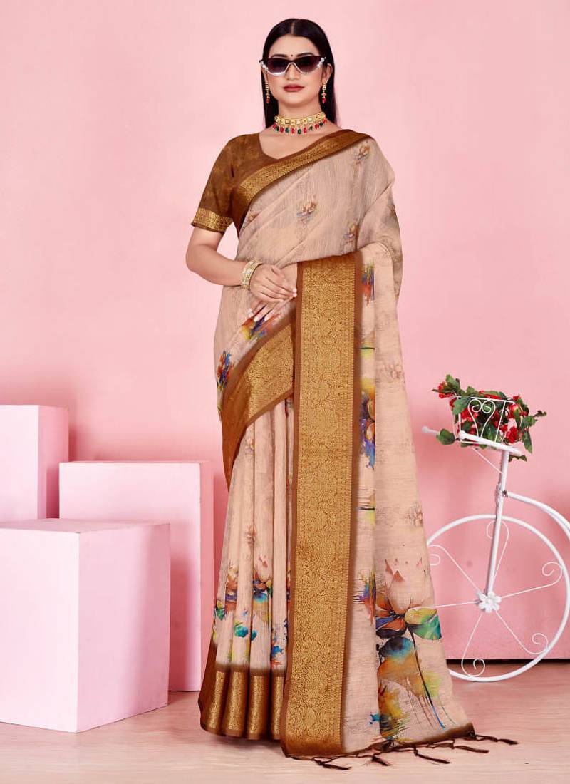 • Saree : Color- Cream / Fabric- Art Silk • Blouse : Color- Brown / Fabric- Art Silk Saree Details
