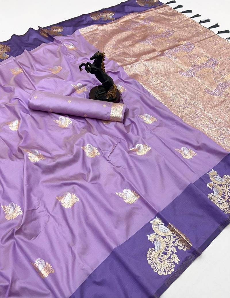Light Purple Soft Silk Saree With Zari Weaving & Peacock Motifs