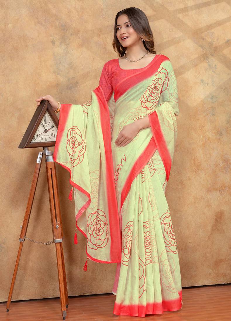 • Saree : Color- Yellow / Fabric- Art Silk • Blouse : Color- Orange / Fabric- Art Silk Saree Details