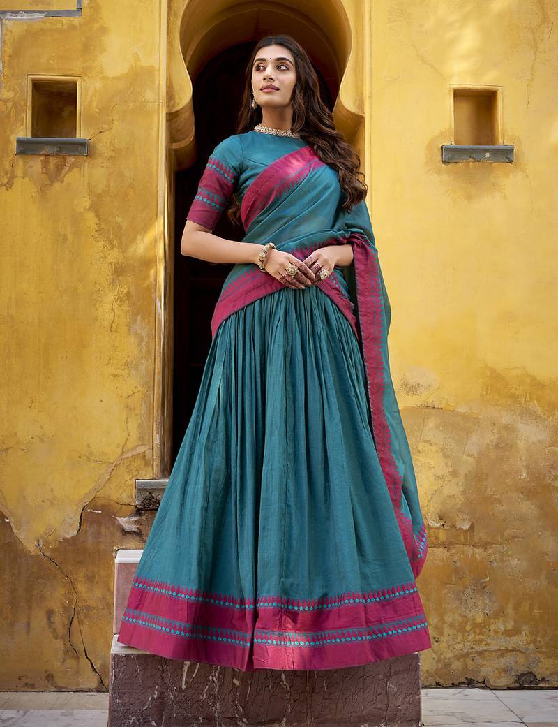 Teal Embroidered Chanderi Ethnic Lehenga Choli With Dupatta