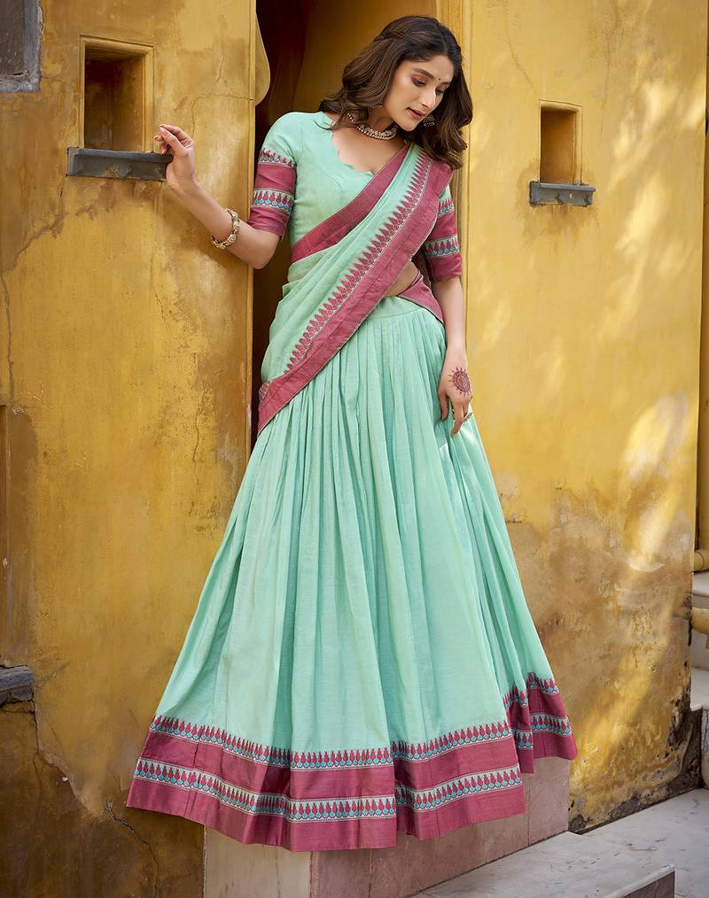 Sky Blue Embroidered Chanderi Ethnic Lehenga Choli With Dupatta