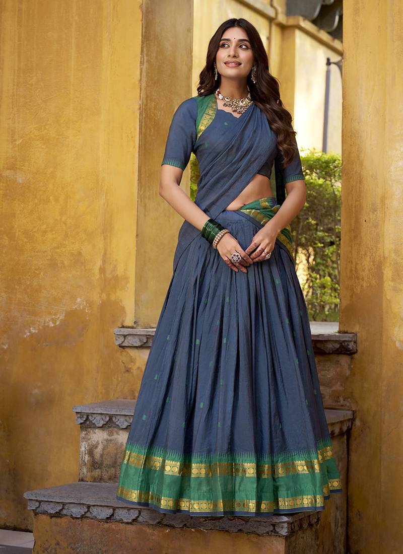Navy Blue Woven Chanderi Ethnic Lehenga Choli With Dupatta
