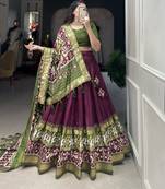 Wine Color Tussar Silk With Patola Print Foil Work Lehenga Choli For Women