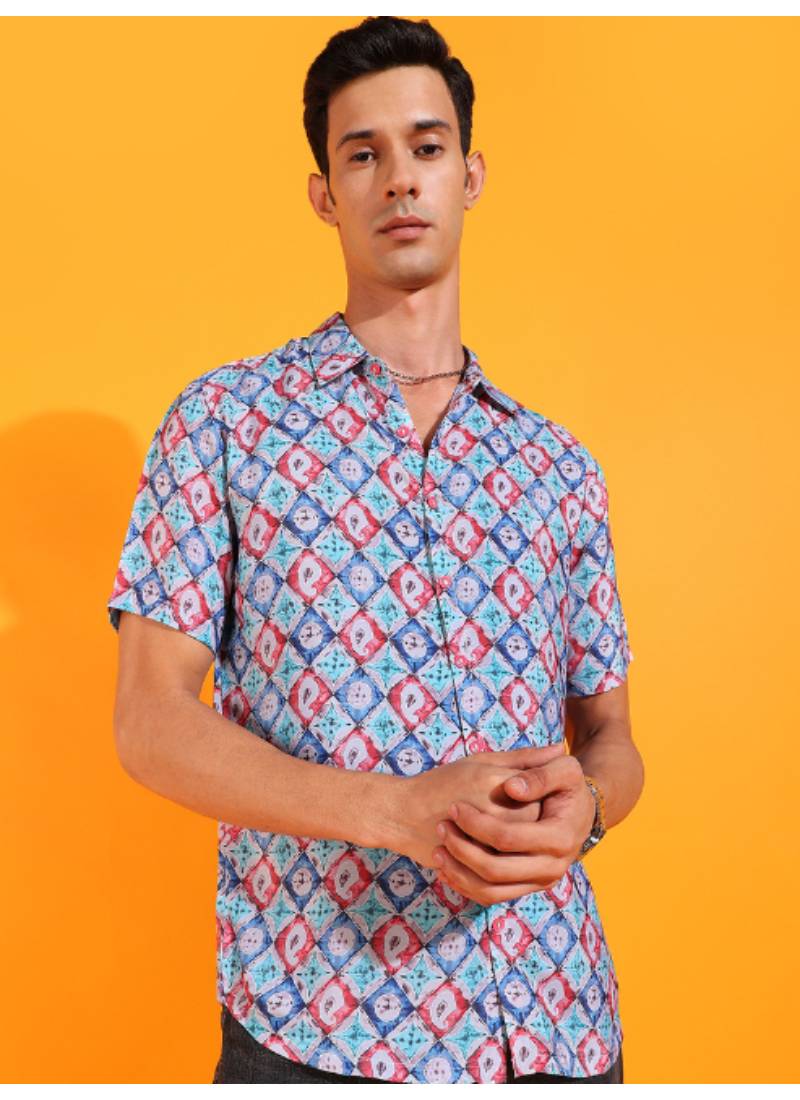 An amazing range of Men's Shirt in soft and solid colors that looks perfect for regular wear. With beautiful designs and patterns. These apparels are very stylish and comfortable too. Get rid of the 'regular' look this season wearing Shirt. With a perfect blend of comfort and traditional style, This Multi Geomatrical Printed Shirt exhibits with buttons, Short Sleeves. Tailored from Polyester. Product Length: 29 Inches.